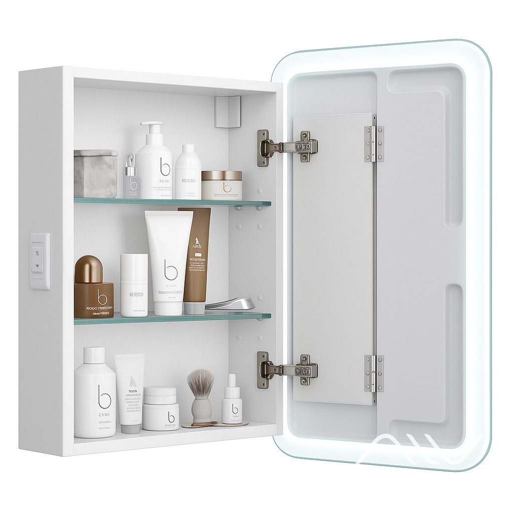 Корпус настенного зеркального шкафа изготавливается из влагостойкой ЛДСП, благодаря чему сохраняет стабильность даже при постоянном контакте с водой и паром. Бельгийское зеркальное полотно создает идеальные условия для проведения косметических процедур на дому. Возможность приближения дверцы, оснащенной двухосевым поворотным механизмом (патент №2779678), позволяет легко настроить угол обзора, чтобы рассмотреть себя во всех деталях.