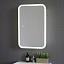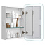 Отказ от лишних деталей (замена ручки на эргономичный зацеп, отсутствие видимых проводов и встроенная розетка) помогает гармонично вписать зеркало-шкаф с подсветкой в современное минималистическое оформление. Яркость Led подсветки регулируется расположенным сбоку сенсором. Шкафчик может устанавливаться как в правом, так и в левом исполнении.
