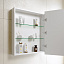 Зеркало-шкаф Париж 70 имеет две стеклянные полки. Открывается зеркало со шкафом плавно и легко за счет оснащения петель с доводчиками. Вместо ручки предусмотрен зацеп.