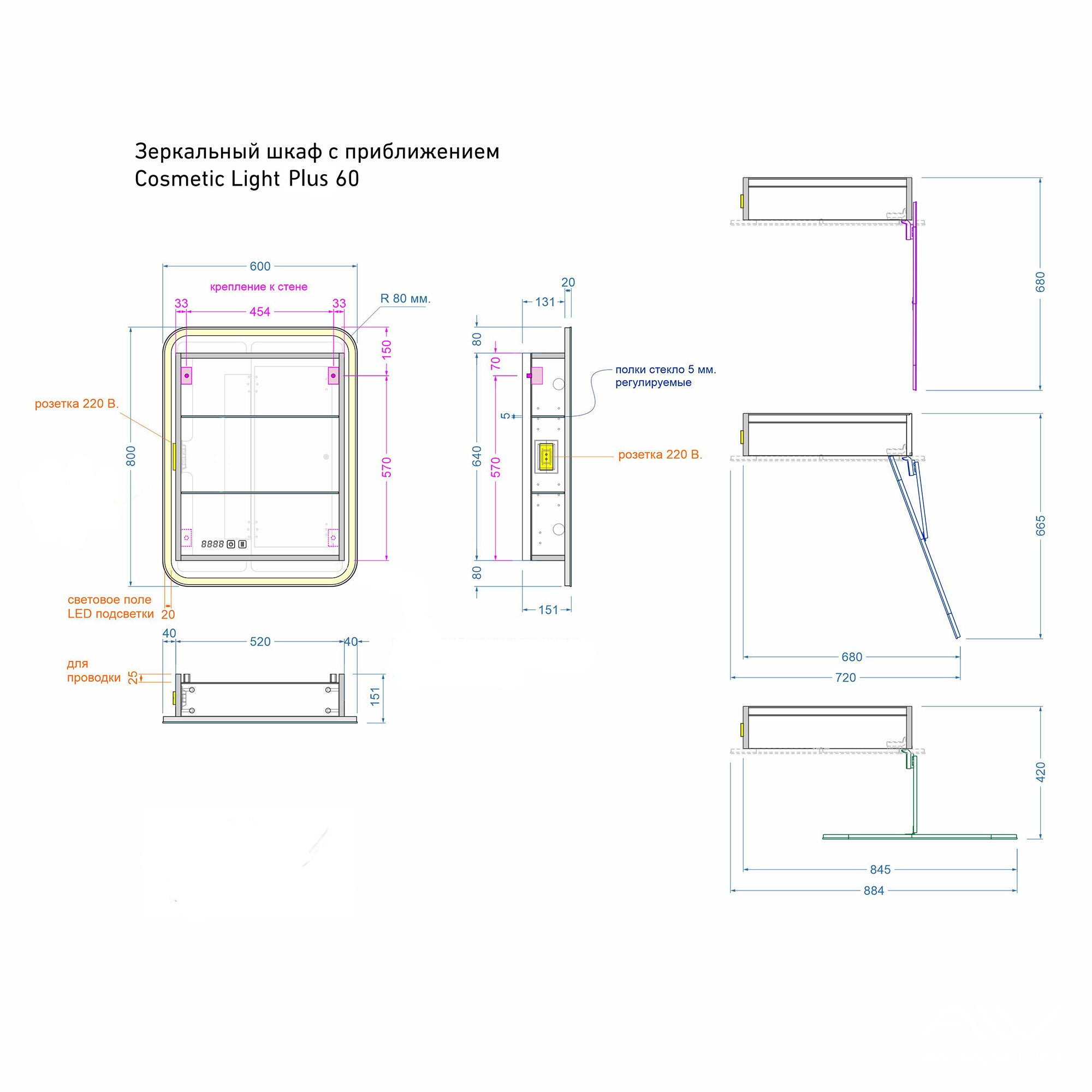 Зеркало-шкаф Косметик Лайт Плюс 60x80 с приближением— премиальная модель в серии Cosmetic, шкафсоздан для тех, кто ценит качество, инновации и безупречный стиль в каждой детали интерьера ваннойкомнаты.