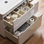 - Продуманная организация внутреннего пространства двух ящиков при помощи съемных делителей. Ящики установлены на направляющих с доводчиками.
