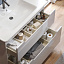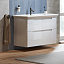 В тумбе Берта 105 имеются два вместительных выдвижных ящика на направляющих с доводчиками, которые внутри отделаны фирменным материалом – интерьерный лен или бетон (обращаем ваше внимание, что цвет внутреннего исполнения зависит от партии товара) и укомплектованы съемными делителями. Ящики позволят практично организовать хранение необходимых принадлежностей и бытовой химии.