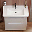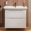 Тумба с раковиной Berta 75 белая воплощает новый уровень комфорта в ванной комнате. Подвесная конструкция с двумя секциями не загромождает пространство и помогает организовать вместительную зону хранения. Интегрированные в фасады ручки-зацепы поддерживают тренд на «невидимый» интерьер, а наличие доводчиков фирмы Hettich (Германия) обеспечивает долговечную эксплуатацию выдвижных систем.