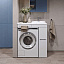 Тумба с раковиной Cosmetic 85 белая разработана специально под стиральную машину и идеально сочетает в себе эстетику и высокую функциональность. В состав умывальника входит столешница из влагостойкого материала, на которой предусмотрены места для размещения мыльных принадлежностей, и боковой приставной модуль с выдвижным ящиком, для хранения различных бытовых предметов или белья. Эргономичная ручка на фасаде верхней секции облегчает процесс открывания и с успехом выполняет роль удобного полотенцедержателя. Петли с доводчиками, производство Hettich (Германия).