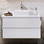 Тумба с раковиной Лаурель 100 монтируется при помощи усиленных навесов, гарантирующих безопасную эксплуатацию мебели.