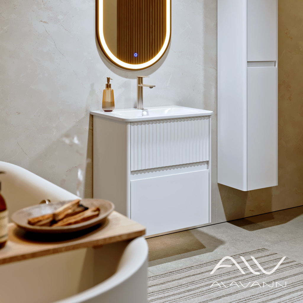 Благодаря использованию качественных износоустойчивых материалов (корпус и вкладные фасады – МДФ с эмалью), раковина с тумбой от Alavann не потеряет своей формы и привлекательности даже после долгого нахождения во влажной среде.