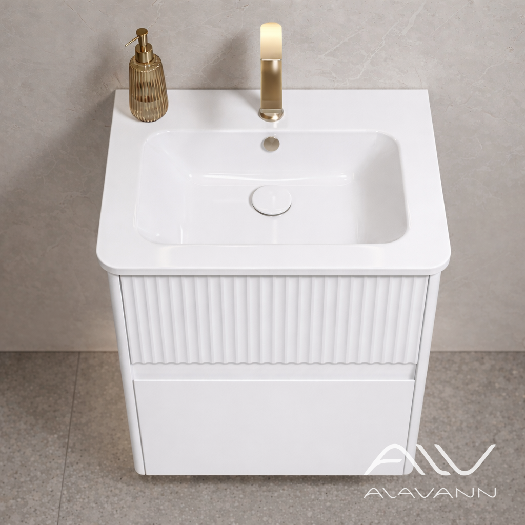 Универсальный белый цвет делает тумбу с раковиной Wave 60 см беспроигрышным вариантом оформления комнат любой стилистики. Но лучше всего изделие подходит для ванной классической и неоклассической направленности.