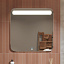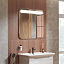 Подсветка выполнена из светодиодных ламп, потребляющих 30 W мощности. Она наполнит ванную комфортным светом нейтрального оттенка. Для нее требуется напряжение 220 В. Сенсорный выключатель позволит управлять освещением одним касанием.