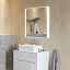 Вертикальное холодное подсвечивание позволит создать идеальный макияж. LED подсветка зеркала рассчитана на время до 50 000 часов при небольшом энергопотреблении. Её яркость можно настроить в одно касание выключателем-диммером. При необходимости диммер можно заменить на выключатель-кнопку или ИК-выключатель.
