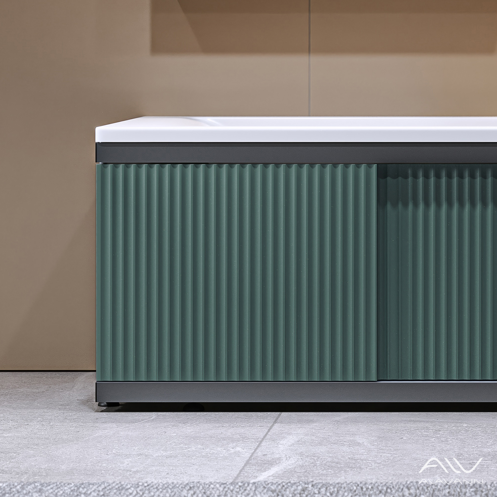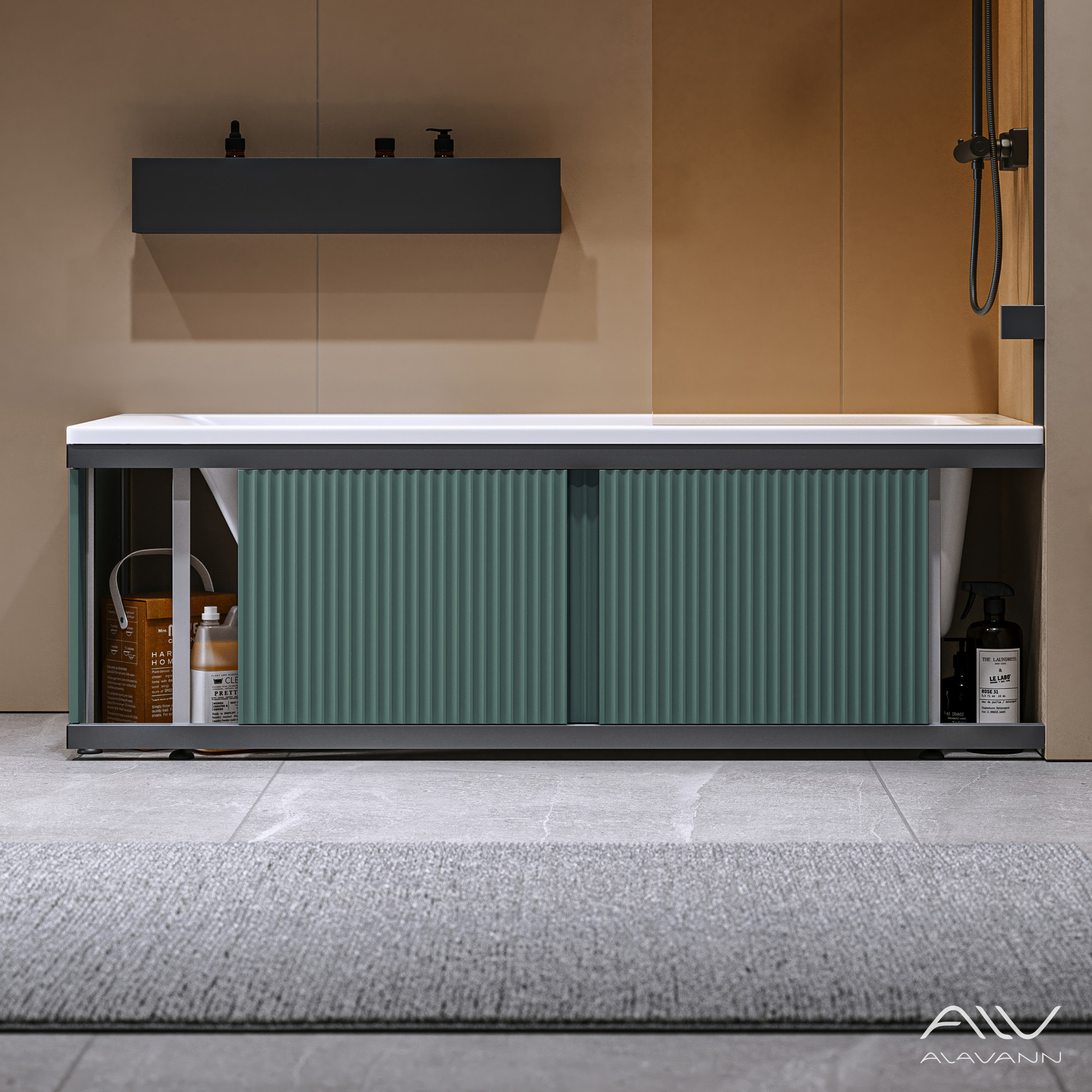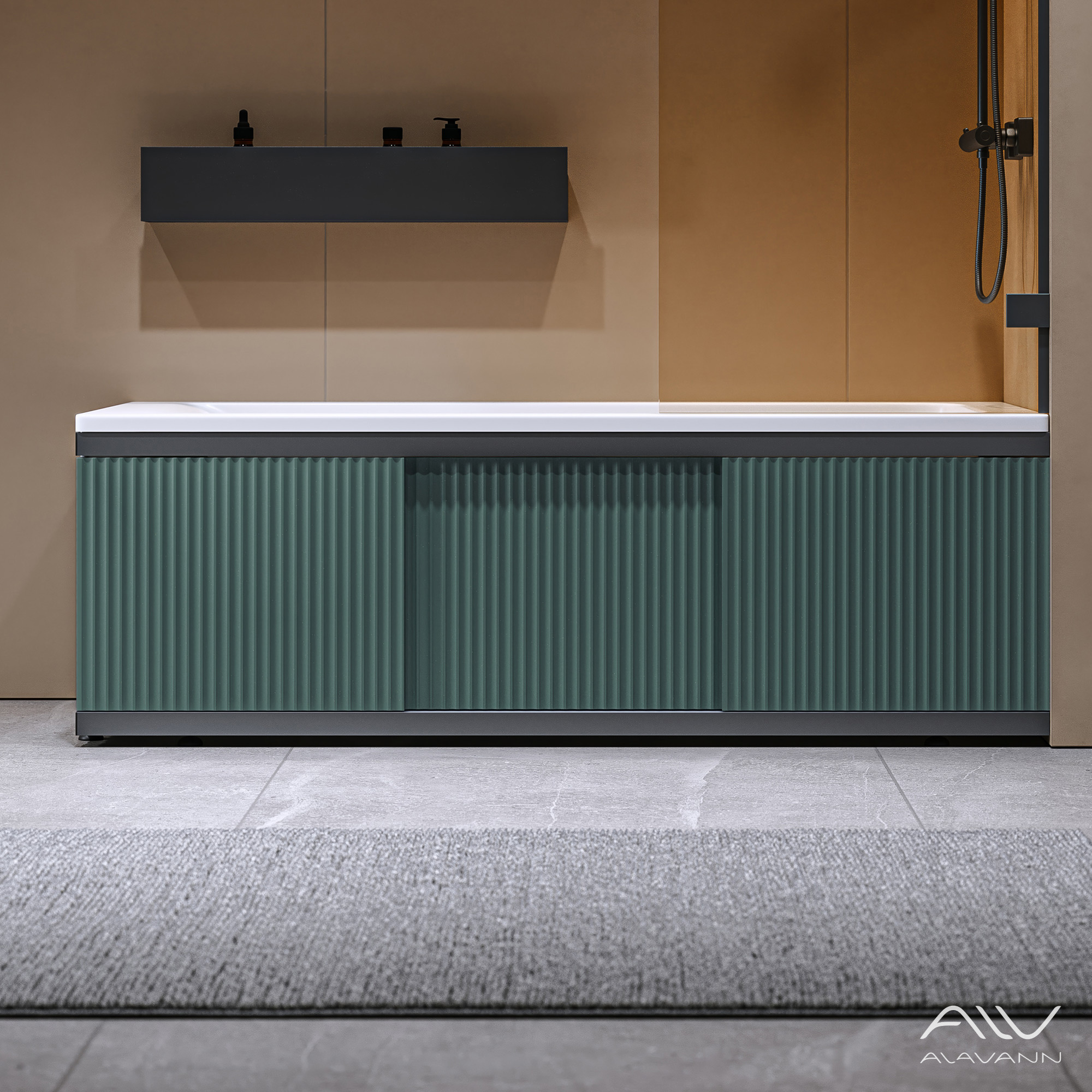 Экран под ванну Альт Блэк 150 зеленый хвойный с фрезеровкой, из МДФ, раздвижной