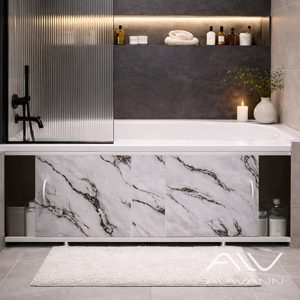 Экран под ванну Elegant 150 мрамор каррара – это сочетание современного дизайна и практичности. Он скрывает пространство под ванной, упрощает уборку и придаёт комнате аккуратный вид. Три панели ПВХ толщиной 5 мм обеспечивают прочность и влагостойкость. Двери-купе открываются плавно и бесшумно, боковые панели оснащены ручками «Скоба», центральная остаётся гладкой. Алюминиевый каркас с порошковым покрытием устойчив к влаге и коррозии. Регулируемые опоры позволяют выставить экран точно по уровню, обеспечивая идеальную установку.