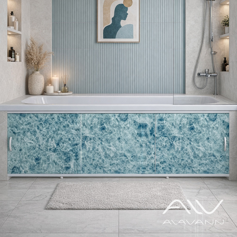 Двери-купе обеспечивают лёгкое открывание, боковые фасады оснащены ручками «Скоба», а центральная панель остаётся гладкой, не перегружая дизайн. Регулируемые опоры позволяют адаптировать экран под любую ванну, а алюминиевый профиль с порошковым покрытием защищает его от влаги, сохраняя презентабельный вид на долгие годы.