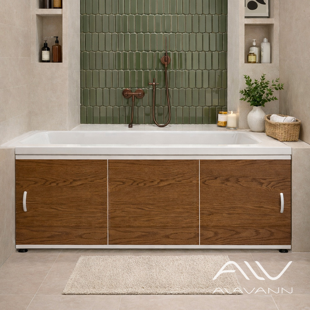 Экран под ванну Elegant 170 дуб светлый — практичный экран, который делает ванную комнату аккуратной и функциональной. Раздвижные двери-купе из ПВХ, толщина 5 мм скрывают пространство под ванной, сохраняя лёгкий доступ к трубам и коммуникациям.