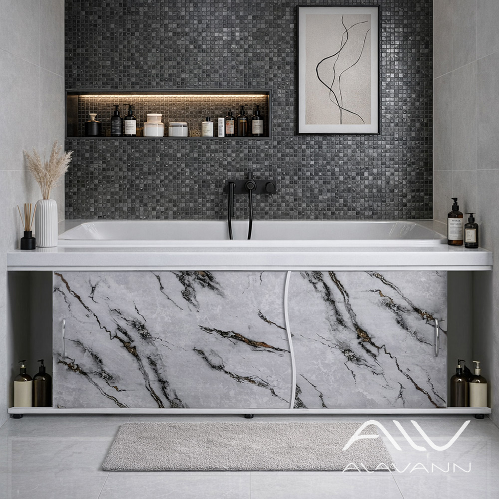 Если вы хотите быстро преобразить ванную комнату, экран Elit 150 мрамор каррара станет практичным решением. Он закрывает пространство под ванной и делает интерьер более аккуратным и современным.